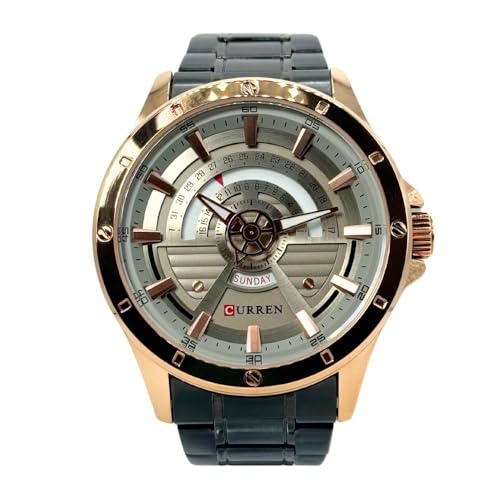 CURREN 8381. Reloj de Cuarzo para Hombre con Correa de Acero Inoxidable Negro, Caja de Color Oro Rosa. Cuenta con Calendario y función de día de la Semana.