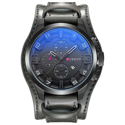 CURREN Reloj de vestir para hombre con esfera de zona horaria múltiple, visualización de fecha, correa de cuero, reloj de cuarto de galón, color azul 8329, Correa