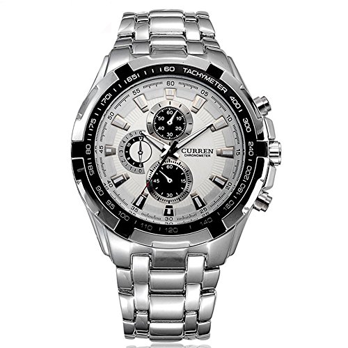 CURREN Caja Blanca del Reloj Banda de acero Inoxidable Reloj de los Hombres analógica