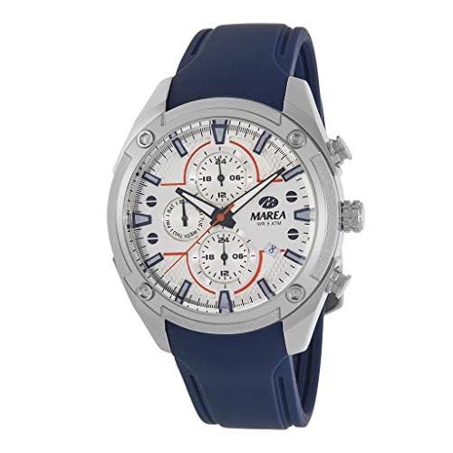 Reloj Marea Analógico Multifunción Hombre B54156/1 con Calendario, Correa de Silicona Azul y Esfera Plateada
