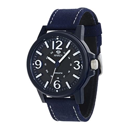 Reloj Marea Caballero, correa de loneta, Esfera Azul con numeros en blanco, Cristal mineral, Tamaño, 44 mm grueso 9 mm…