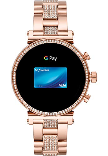 Una actualización de un clásico muy querido. El nuevo smartwatch de pantalla táctil Sofie fusiona el glamour más moderno con la tecnología wearable más innovadora, para ayudarte a mantenerte motivada, activa y conectada. Potenciado con la tecnología Wear OS by Google, este smartwatch incluye modernas y avanzadas funciones, como el medidor de la frecuencia cardíaca, tecnología sumergible, pagos con NFC, GPS, Google Assistant y mucho más. El diseño combina un brazalete de acero inoxidable en tono oro rosado, enlaces centrales con pavé, pantalla completa redonda y bisel de cristal pavé. Con opciones de personalización ilimitadas que se adaptan a tu vida y tu carácter, el Sofie presenta nuevos diseños de esfera digital que se conectan y muestran tu frecuencia cardíaca para que la controles de manera sencilla. Los smartwatch fabricados con tecnología Wear OS by Google son compatibles con teléfonos iPhone y Android. GoogleWear OS by Google y otras marcas relacionadas son marcas comerciales de Google LLC. Los smartwatches con pantalla táctil con Wear OS by Google requieren un teléfono con un sistema operativo Android 4.4 o superior (edición Go no incluida) o iOS 9.3 o superior. Las características admitidas pueden variar entre plataformas. Para evitar daños en el reloj, utilízalo solo con el cargador incluido. No uses un hub USB, divisor USB, cable en Y de USB, batería u otro dispositivo periférico para cargar.El producto debe mantenerse a una distancia de más de 20 cm de dispositivos médicos implantados para minimizar la posibilidad de interferencia de RF. Consulte todos los detalles en el prospecto del producto
