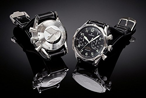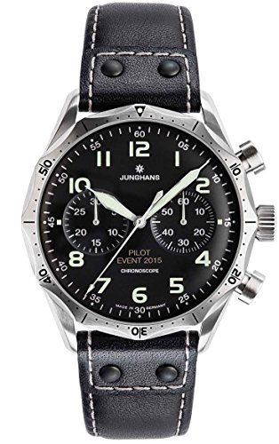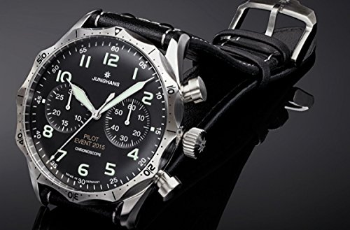 Versión Limited Edition de la Meister Pilot Junghans. Sólo 150 relojes elaborado en todo el mundo, este uno está numerado 90. Dial marcado Pilot caso 2015. Caseback es especialmente grabado con Junghans fabricación. En 1955 el reloj newly-established Bundeswehr tenía un requisito para un servicio para sus pilotos. La Orden fue ganado por Junghans, que pasó a producir el ahora legendario piloto cronógrafo con su dodecagonal bisel. El diseño de la Meister Pilot se basa en este.