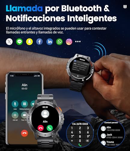 📞【Llamadas Bluetooth, notificaciones y asistente de voz】El reloj inteligente LIGE se sincroniza con tu smartphone a través de la aplicación «FitCloudPro» por Bluetooth, permitiéndote hacer, responder o rechazar llamadas, almacenar contactos, ver registros de llamadas y recibir notificaciones de redes sociales (Facebook, Instagram, Gmail, WhatsApp, Twitter, Snapchat) directamente en tu reloj. También puedes usar el asistente de voz AI para control manos libres.