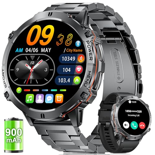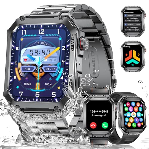 🏄♂️【Grado militar e impermeabilidad IP68】Este robusto reloj inteligente militar cuenta con 12 certificaciones, incluyendo resistencia a los golpes, tolerancia a temperaturas extremas, impermeabilidad IP68 y resistencia al polvo. Hecho de acero inoxidable 304, su diseño duradero y resistente a los arañazos incluye una pulsera de acero sólido y un cierre de seguridad plegable. Perfecto para los entusiastas del aire libre, está construido para soportar cualquier entorno gracias a su construcción impermeable, a prueba de golpes y polvo.
