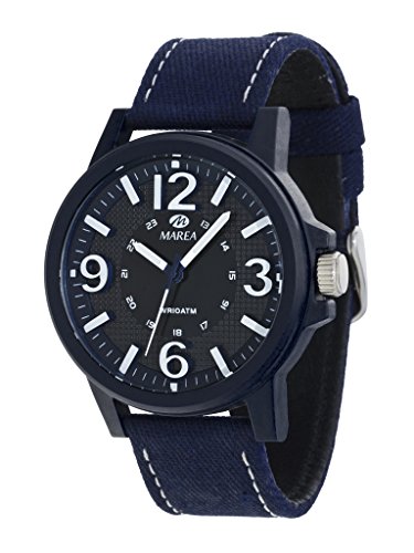 Reloj Marea Caballero, correa de loneta, Esfera Azul con numeros en blanco, Cristal mineral, Tamaño, 44 mm grueso 9 mm…