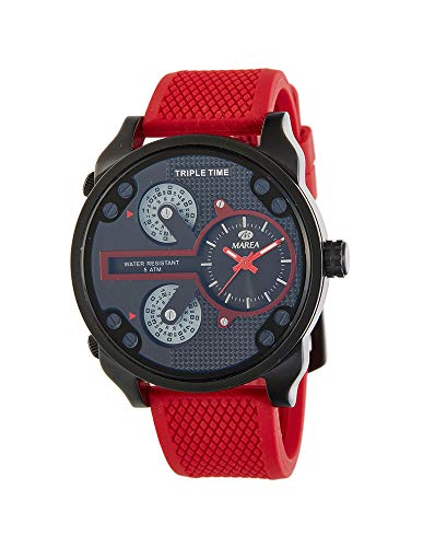 El nuevo reloj de la colección Trendy es todo un rompedor. Con su triple horario, diseño espectacular en la esfera y correa de silicona roja es único en su especie. Con gran caja en color negro de 48 mm de diámetro.
