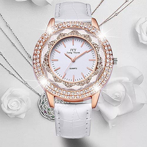 Clásico de de, este reloj para mujer de movimiento cuarzo es indiscutible que es más que nunca en el aire del tiempo. jiangyuyan ofrece un reloj a la vez elegante y moderna con carcasa de acero inoxidable y diamantes de imitación utilizado delicadamente sobre un pulsera flexible de piel que sublimera cualquier atuendo un el brillo femenina suntuoso.
