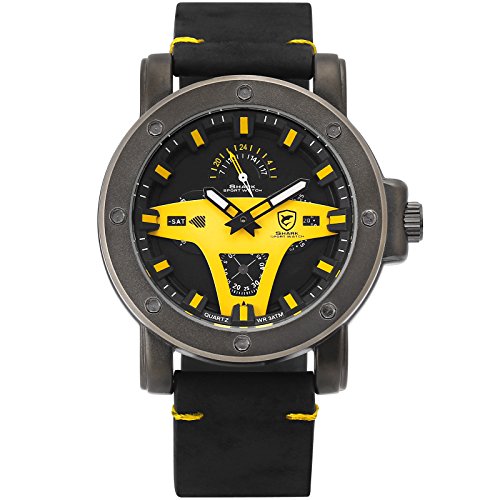 SHARK ARMY Reloj Militar Hombre de Cuarzo, Correa de Cuero Negro SAW144