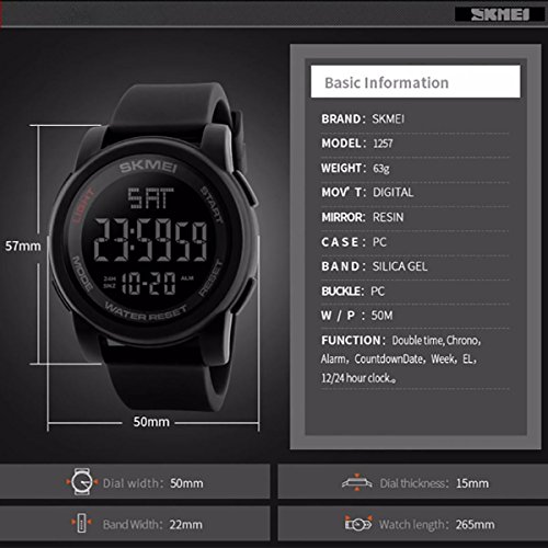 SKMEI Reloj digital de pantalla grande para hombre y adolescente 50 resistente al agua correa de resina cronómetro…