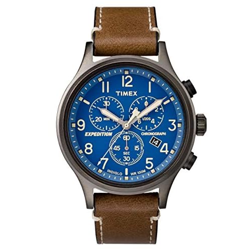 Timex Expedition – Correa de cuero marrón resistente con esfera blanca y ventana de fecha para hombre (40 mm)