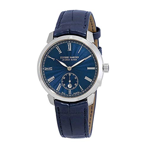 Carcasa de acero inoxidable, correa de piel de cocodrilo con un color azul marino. Bisel fijo de acero inoxidable. Esfera color azul con manecillas plateadas luminosas y marcadores de índice horas. Números romanos marca el 3, 6, 9 y 12 en punto Posiciones. Tipo de esfera: Analógica. LUMINISCENTE manos y Marcadores. Indicación de fecha en la posición 6 o ‘clock. Segundos subesferas en la posición 6 o ‘clock. Ulysse Nardin calibre un-320 movimiento automático con un 72 horas de reserva de carga. Resistente a los arañazos de cristal de zafiro. Transparente Carcasa trasera. Caso Tamaño: 40 mm). Grosor de la caja: 9,6 mm. Estuche redondo forma. Cierre Tang. Resistente al agua a 30 metros/100 pies. Funciones: fecha, hora, minuto, segundo. Diseño de reloj de lujo. Reloj Label: Suiza Hecho. Ulysse Nardin Classico – Reloj de hombre automático 3203 – 136 – 2/33.