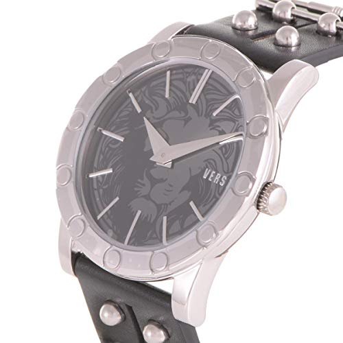 Caja de acero inoxidable con una correa de cuero negro con tonos plateados y colgantes de seguridad. Bisel fijo de acero inoxidable. Esfera de color negro con manecillas plateadas e índices de hora. Tipo de esfera: analógica. Mecanismo de cuarzo, movimiento de cuarzo. Cristal mineral resistente a los arañazos. Corona de tracción. Tapa de la funda sólida. Diámetro de la caja: 40 mm. Forma de la caja redonda. Ancho de la correa: 20 mm. Cierre de velcro. Resistente al agua hasta 30 metros. Funciones: hora, minuto. Información adicional: correa de cuero adicional. Versus by Versace Miami SF7020014 Reloj negro con esfera negra de cuero negro