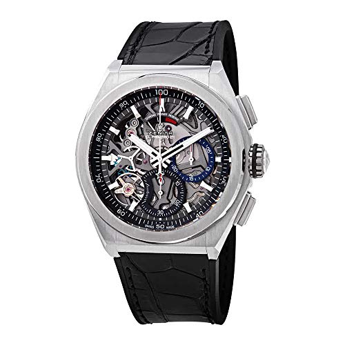 Tono plateado acero inoxidable móvil con un azul correa de cuero (cocodrilo). Bisel fijo de acero inoxidable plateada. Esfera color azul con manecillas plateadas y marcadores de índice horas. Indicadores de minuto en el borde. Tipo de esfera: Analógica. ZENITH calibre Elite 679 movimiento automático con un 50 horas reserva de carga. Resistente a los arañazos de cristal de zafiro. Tire/Empuje Corona. Transparente Carcasa trasera. Estuche redondo forma. Tamaño de la caja: 39 mm. Grosor de la caja: 0,47 mm). Cierre Tang. Resistente al agua a 50 metros/165 pies. Funciones: Hora, minuto, segundo. Diseño de reloj de lujo. Reloj Label: Suiza Hecho. ZENITH Elite automático esfera azul reloj para hombre 03.2290.679/51.c700.