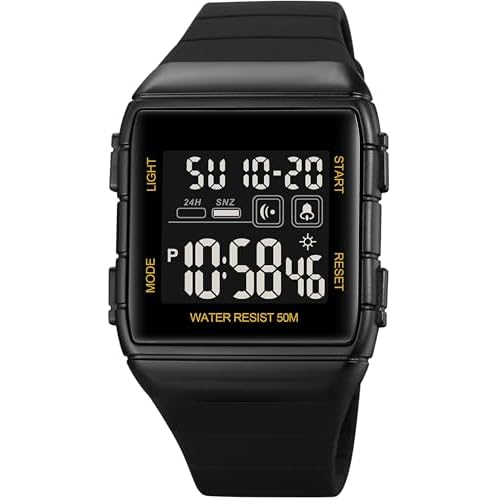 findtime Reloj de pulsera digital para personas mayores, fácil de leer, esfera grande, impermeable, deportivo, al aire libre, único, electrónico, para ancianos, con cronómetro LED y alarma