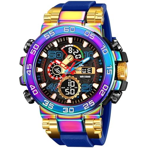 findtime Relojes coloridos para hombre 5ATM resistente al agua reloj digital con doble hora 12/24H indicador LED fecha cronómetro reloj grande para hombre moderno diseño militar