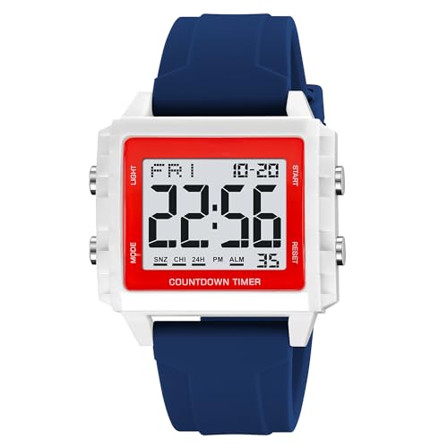 findtime Reloj digital impermeable para hombre, reloj deportivo con retroiluminación LED, alarma, cronómetro, cuenta regresiva